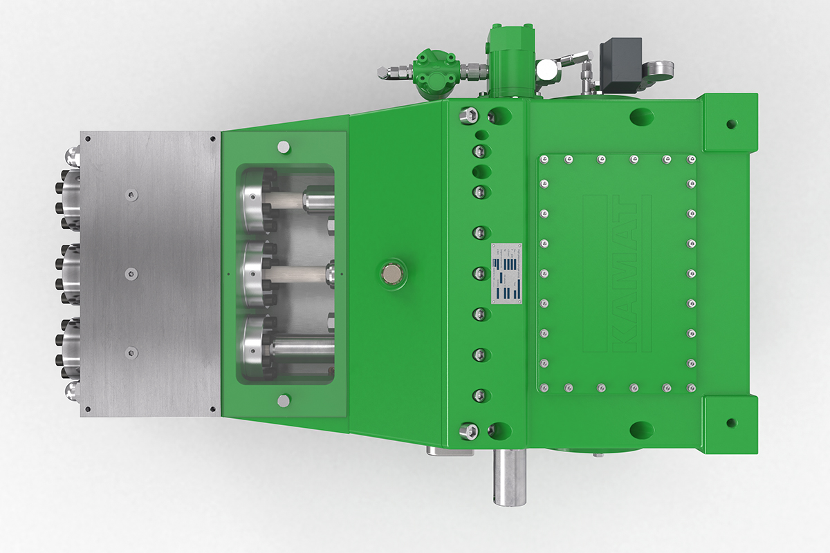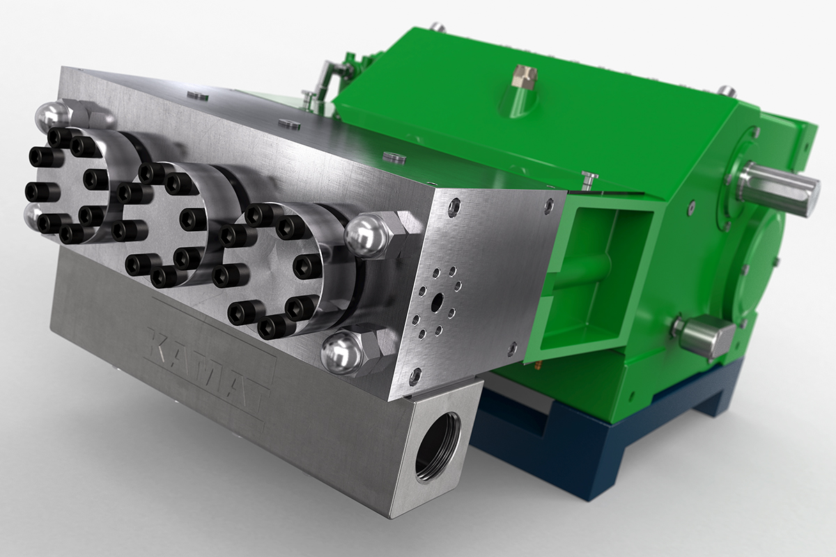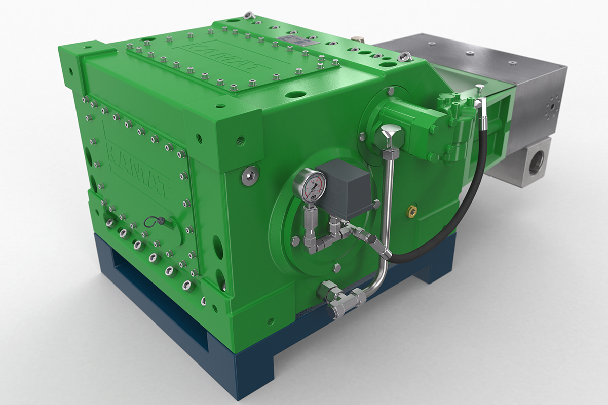 K35000高壓泵的驅動功率為350 kW,非常適合噴射和液壓應用。 例如,它經常與大型移動式噴射系統一起使用,已在化工行業服務多年,并在采礦行業滿足流量從400至600 l升/ 分鐘的需求。 在這種情況下,帶有強制潤滑齒輪和油冷卻器的K35000可以滿足24/7全天候運行的要求。 K35000高壓泵采用經典的KAMAT模塊化組件系統構建,因此可以靈活地適應工作壓力和介質等要求。 因此,它也經常用于過程處理領域。